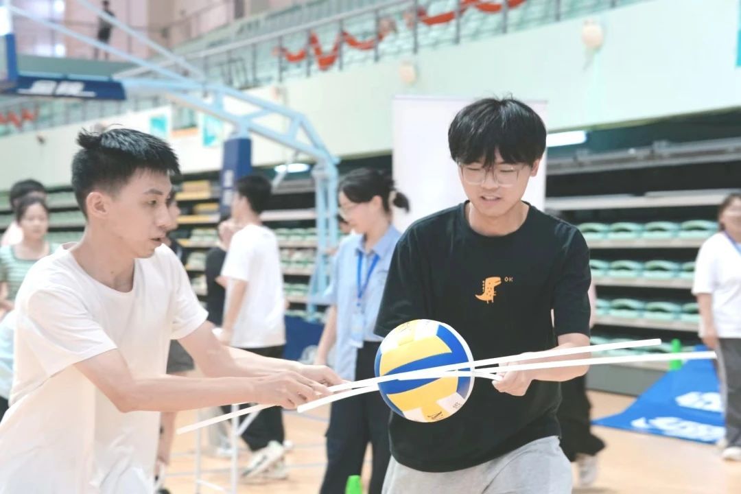 团体项目“众星拱月”精彩上演。来自万象城awc官网登录入口、计算机科学与技术学院、国豪书院等12支代表队的精英们齐聚一堂,他们通过同心鼓颠球的巧妙配合,一边保持排球在空中弹跳,一边携手冲向终点线,充分展现了团队协作的力量与默契。