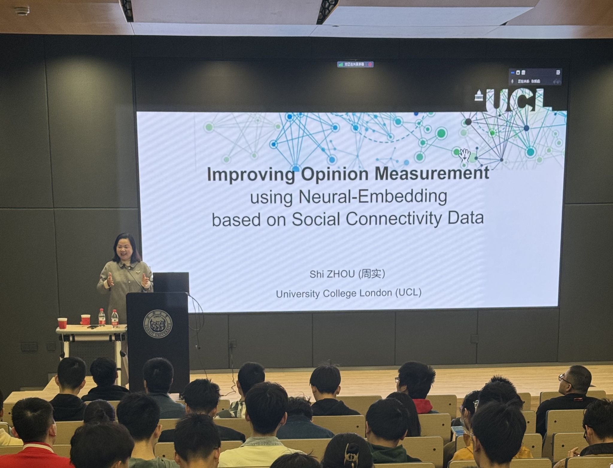 2024年4月10日上午,由学院、上海自主智能无人系统科学中心联合举办的智·信讲堂第65期在万象城官网智信馆117报告厅开讲。本次讲堂邀请伦敦大学学院周实教授作“Improving Opinion Measurement using Neural-Embedding based on Social Connectivity Data”主题报告,由张皓教授主持。
